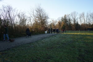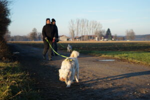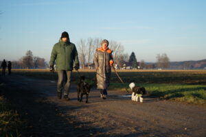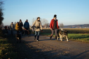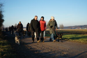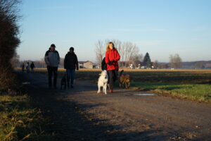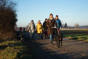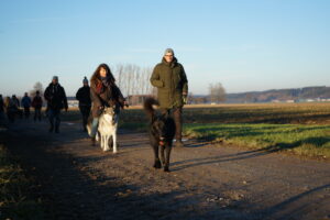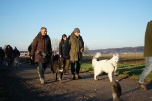 Auch dieses Jahr leiten wir die Winterpause wieder mit einem Jahresabschluss-Gassi in die Wege. Wir beginnen unsere Runde bei satten 2° C und Sonnenschein in Stockheim an der Wertachbrücke. Die 22 Hunde nehmen das Warten bis zum Start recht locker hin und so gehen die 27 Frauchen und Herrchen genauso gelassen los.