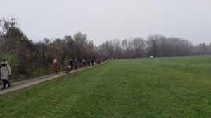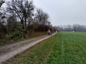 Und dann gings auch schon los Richtung Süden durch den kleinen Wald, vorbei an Wiesen und Feldern immer an der Wertach entlang. Der Wettergott war zumindest dahingehend gnädig, dass es nicht geregnet hat. Über ein paar Sonnenstrahlen und weniger Nebel hätten sich wohl alle Teilnehmer gefreut, aber wir haben das Beste aus dem Nachmittag gemacht.