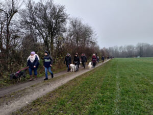 Am Parkplatz vom Bingstetter Stausse in Stockheim angekommen wurden wir begrüsst von regem Hundegebell und vielen Zweibeinern, die ihre Fellnasen zum Jahresabschluss begleitet haben.