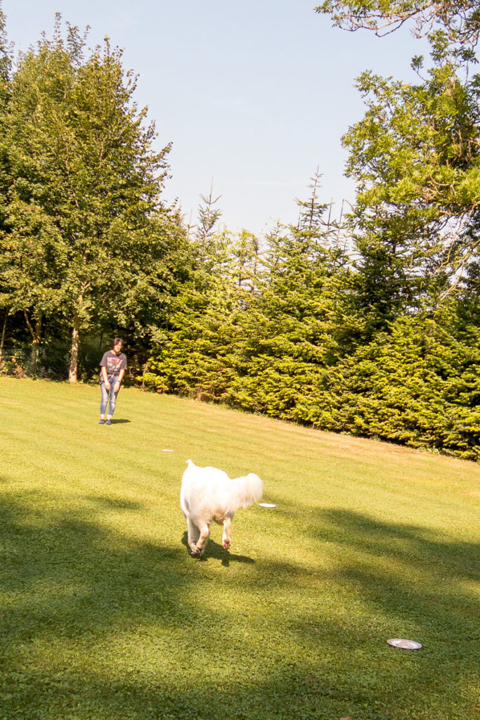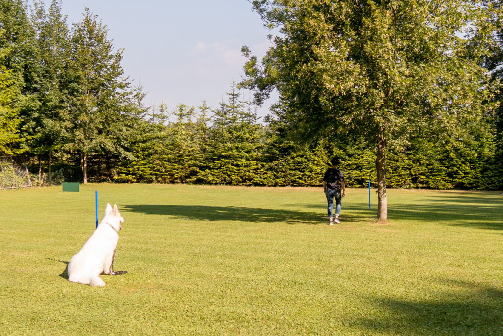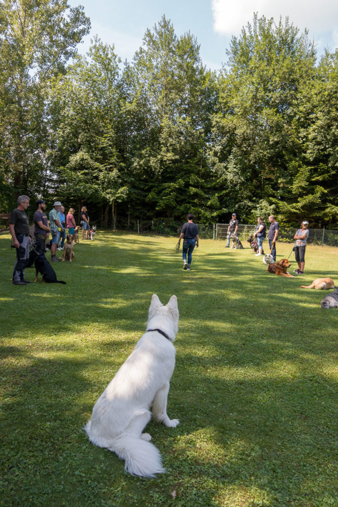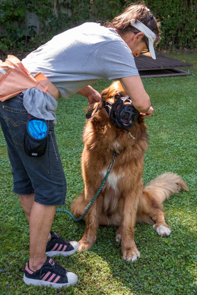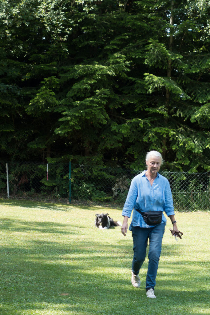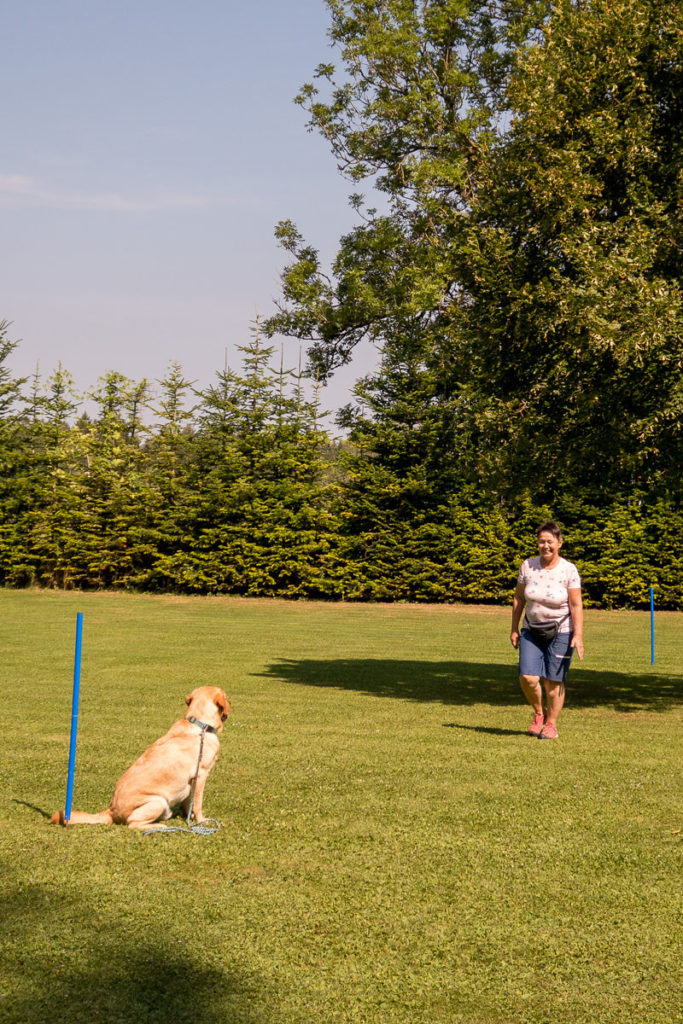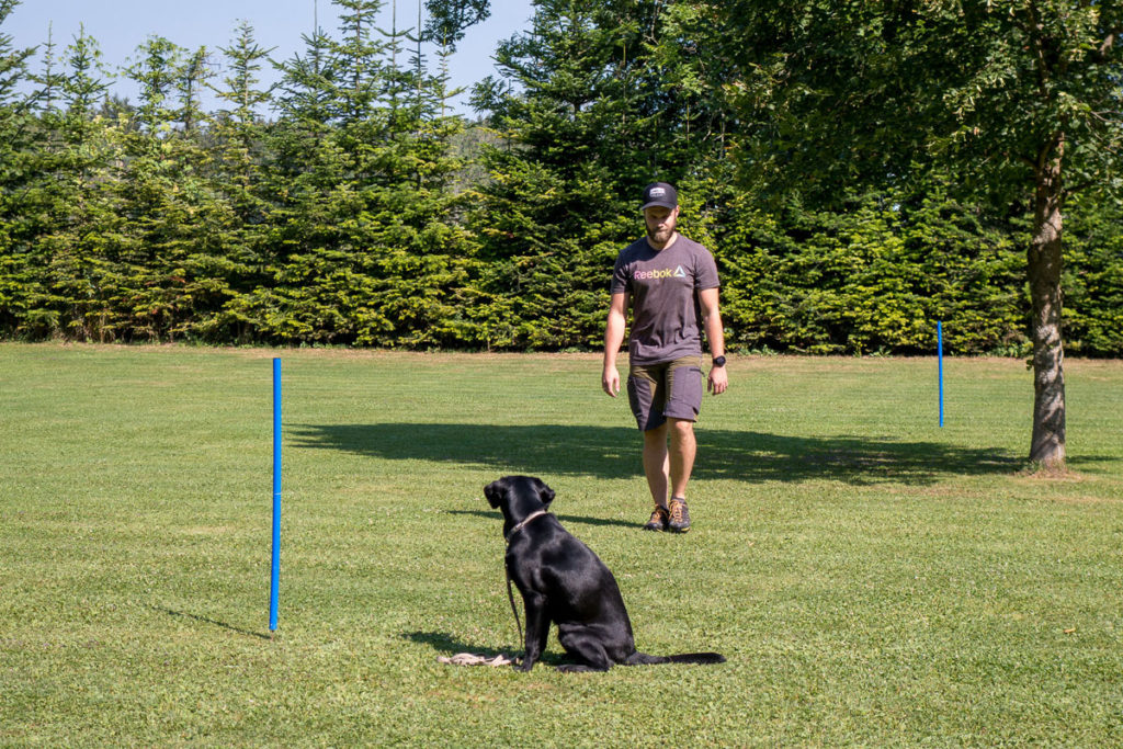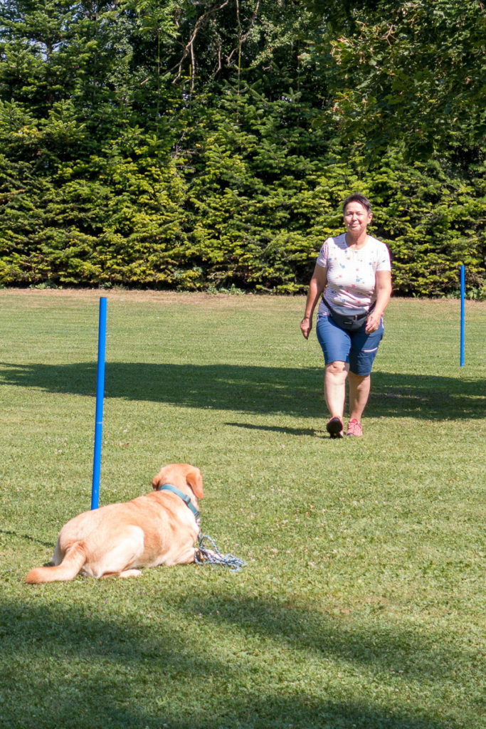 Punkt 9:30 Uhr gings dann auch schon los. Immer zwei Teams wurden auf den Platz gebeten und haben von der Trainerin Gitti die Anweisungen erhalten, die ausgeführt werden mussten. Von einem zuverlässigen Sitz und Platz inkl. Distanz zum Hundehalter, laufen an lockerer Leine, dem Anlegen eines Maulkorbs, auslesen des Chips, dem Abruf unter Ablenkung, dem Lauf durch eine Gruppe von Menschen sowie der Königsdisziplin: dem Impuls zu widerstehen, das leckere Katzenfutter von einem der drei platzierten Teller zu naschen und sich auf den direkten Weg zu Frauchen bzw. Herrchen zu machen.