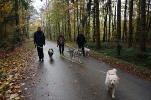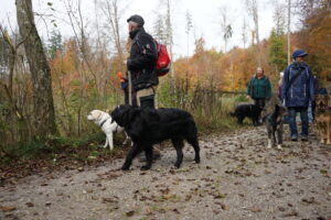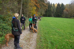 Heute war Ausflugstag mit den Gruppen 3 und 4. Wir trafen uns mit 23 Zweibeinern und 17 Vierbeinern in Bad Wörishofen zu einem Waldspaziergang am Trimm-dich-Pfad.