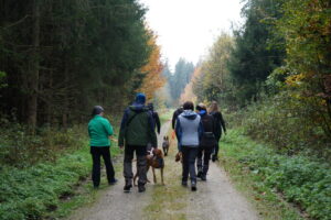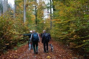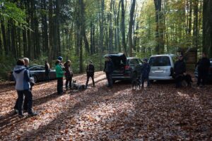 Nach einer kurzen Orientierung am Parkplatz marschierten wir alle gesammelt los. Die Sonne hielt sich zunächst zurück, dafür waren der Buchenwald und das raschelnde Laub auf dem Boden umso schöner.